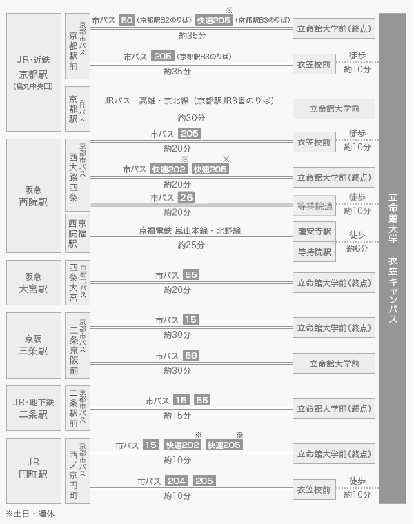 衣笠キャンパスへのアクセスに関するお問い合わせ